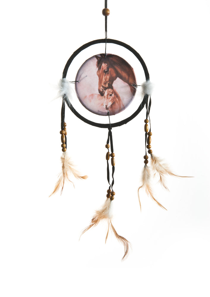 Material: Kunststoffrahmen, Lederimitat, Fotodruckpapier und Hühnerfedern