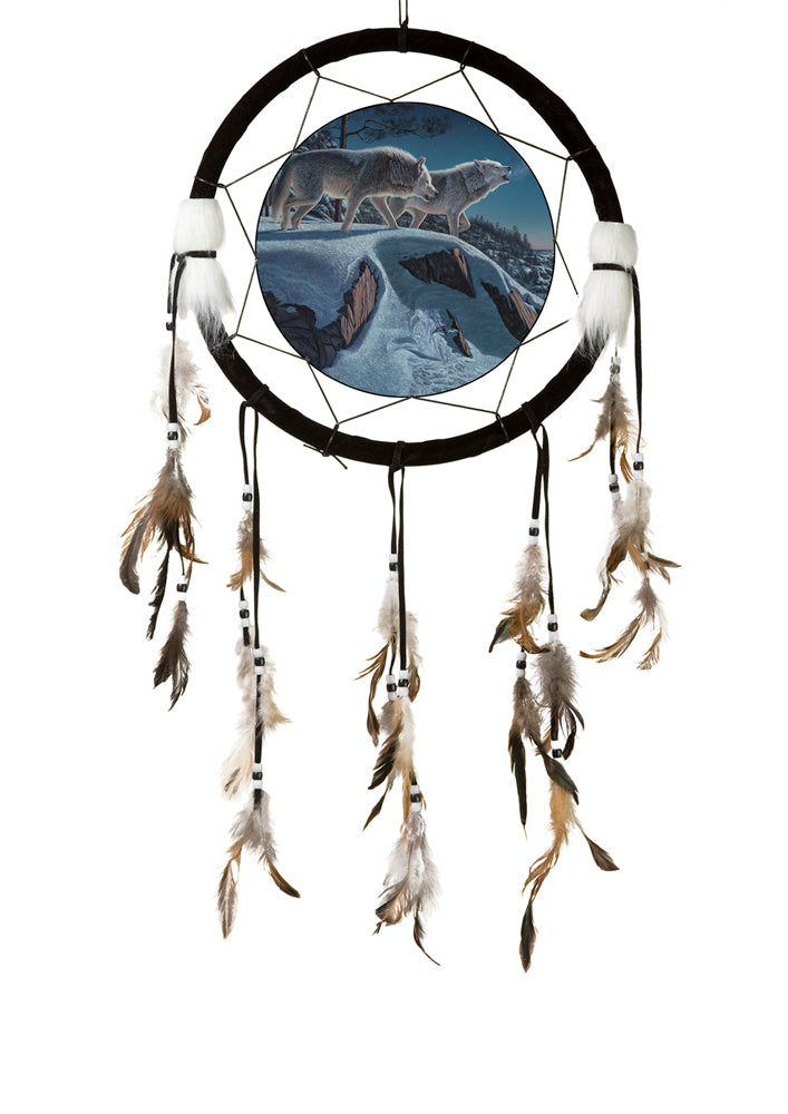Material: Kunststoffrahmen, Lederimitat, Fotodruckpapier und Hühnerfedern