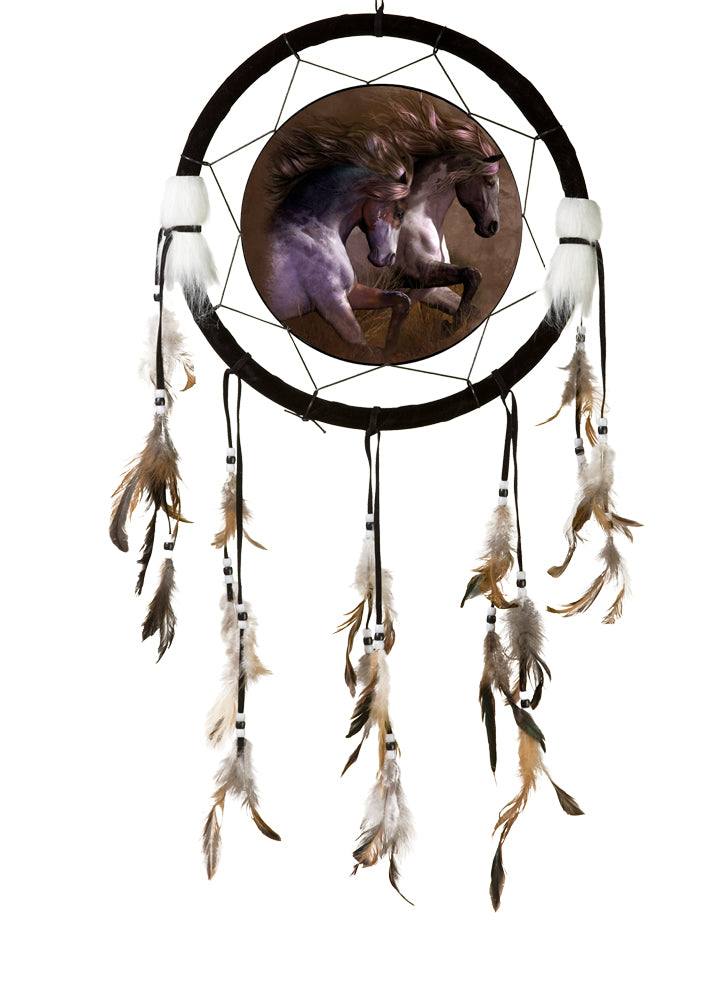 Material: Kunststoffrahmen, Lederimitat, Fotodruckpapier und Hühnerfedern