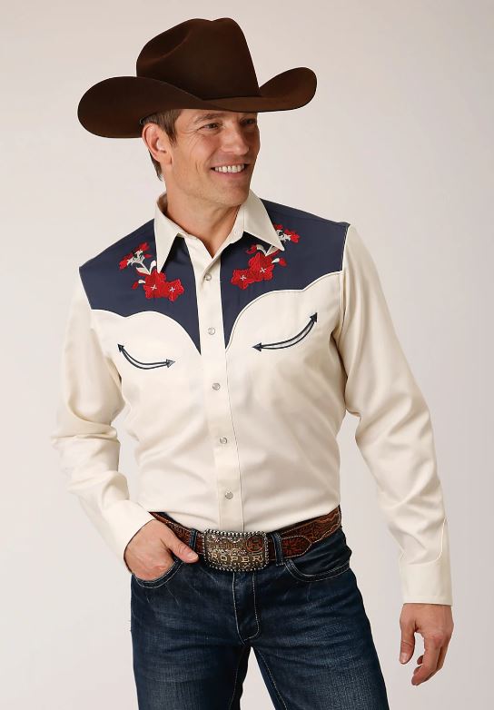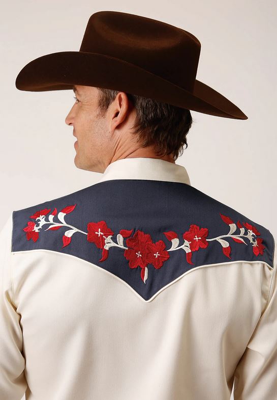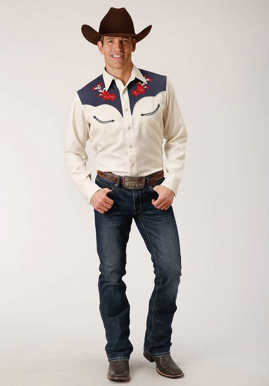 - Roper Mens Twill Blue Yokes Shirt in Weiß aus Polyester