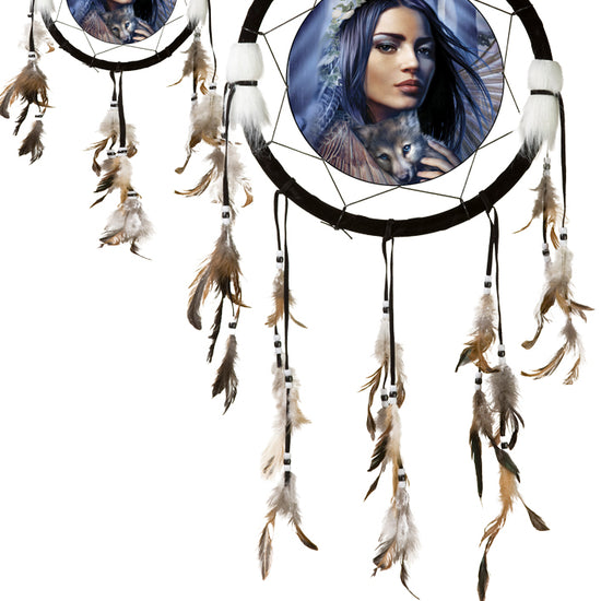 Material: Kunststoffrahmen, Lederimitat, Fotodruckpapier und Hühnerfedern